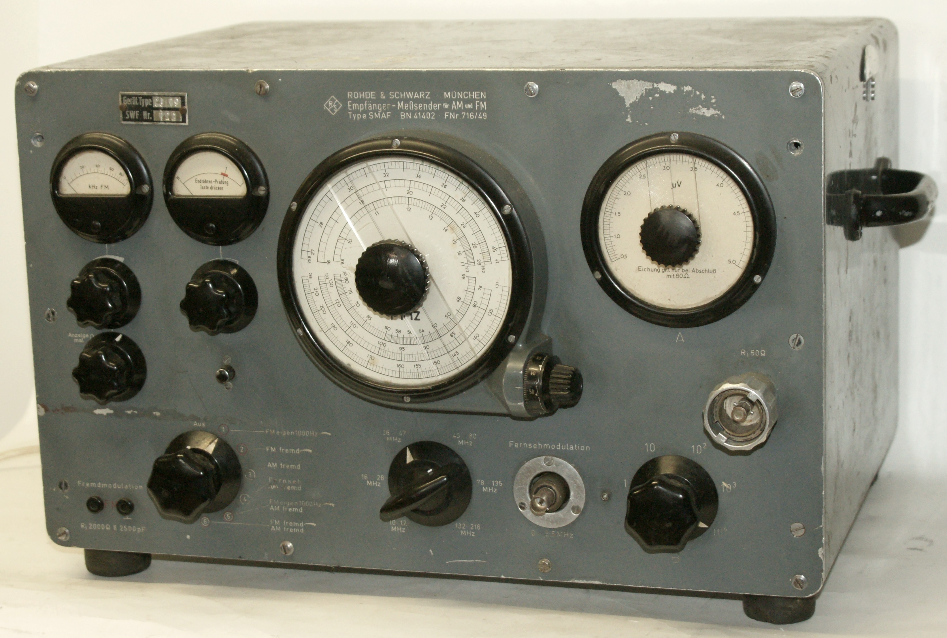 Empfänger Meßsender für AM und FM, Type SMAF, BN 41402. Hergestellt von Rohde & Schwarz, München.