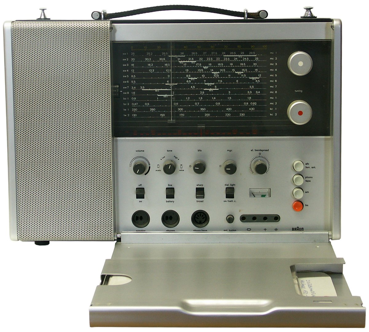 In der Mitte der Sechzigerjahre brachte Braun einen Weltempfänger heraus, der aufgrund seines Designs Furore machte und vor allem in der Nachfolgeversion T1000 CD bei Mitgliedern des diplomatischen Korps beliebt war, um Kurzwellensendungen aus der Heimat zu hören.