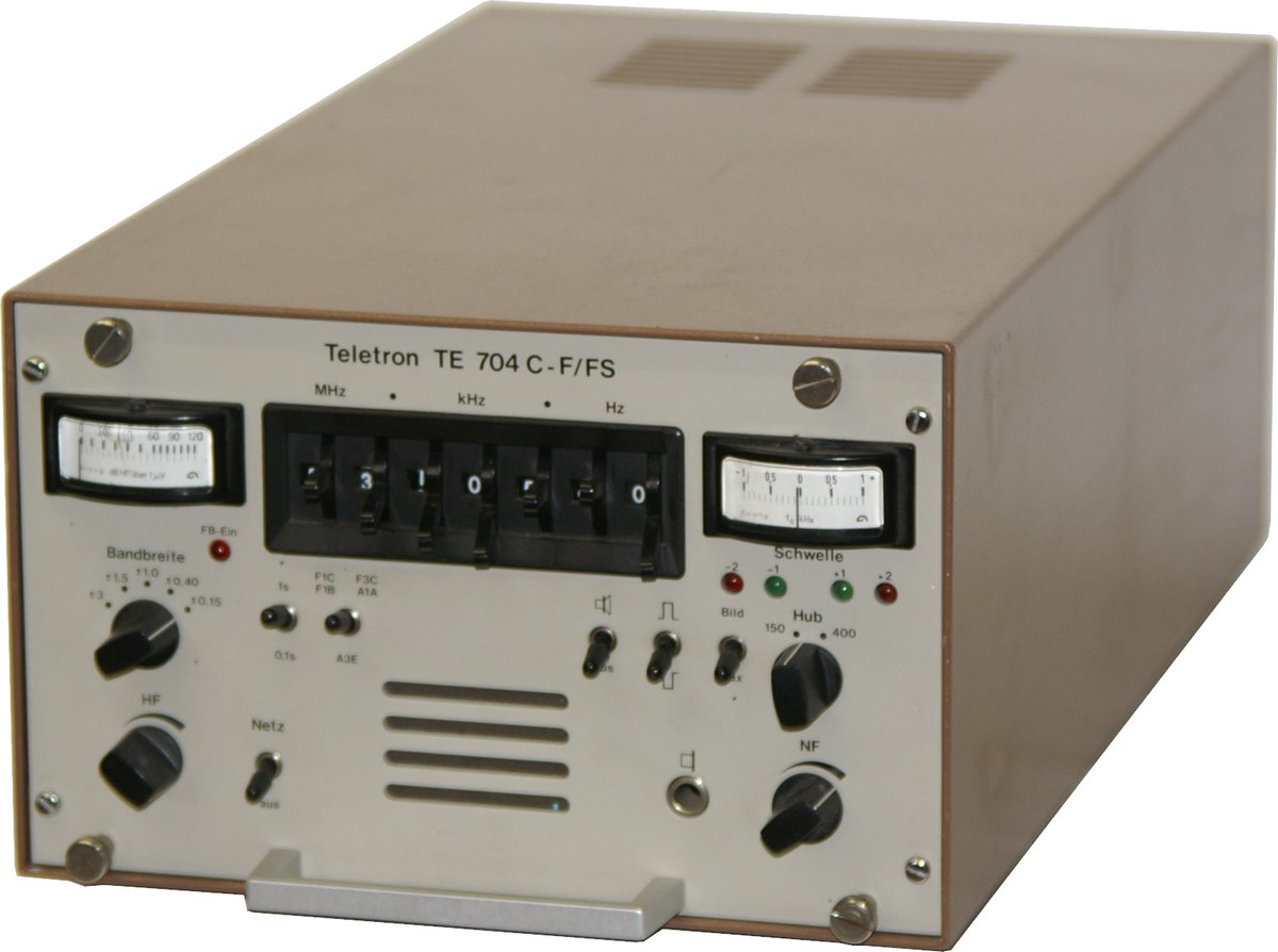 Der Allwellenempfänger Teletron - Pfitzner TE 704 C mit der Frequenzeinstellung mit dekadischen Schaltern wurde zum Fixfrequenzempfang von kommerziellen Diensten und deutschen militärischen Stellen eingesetzt.