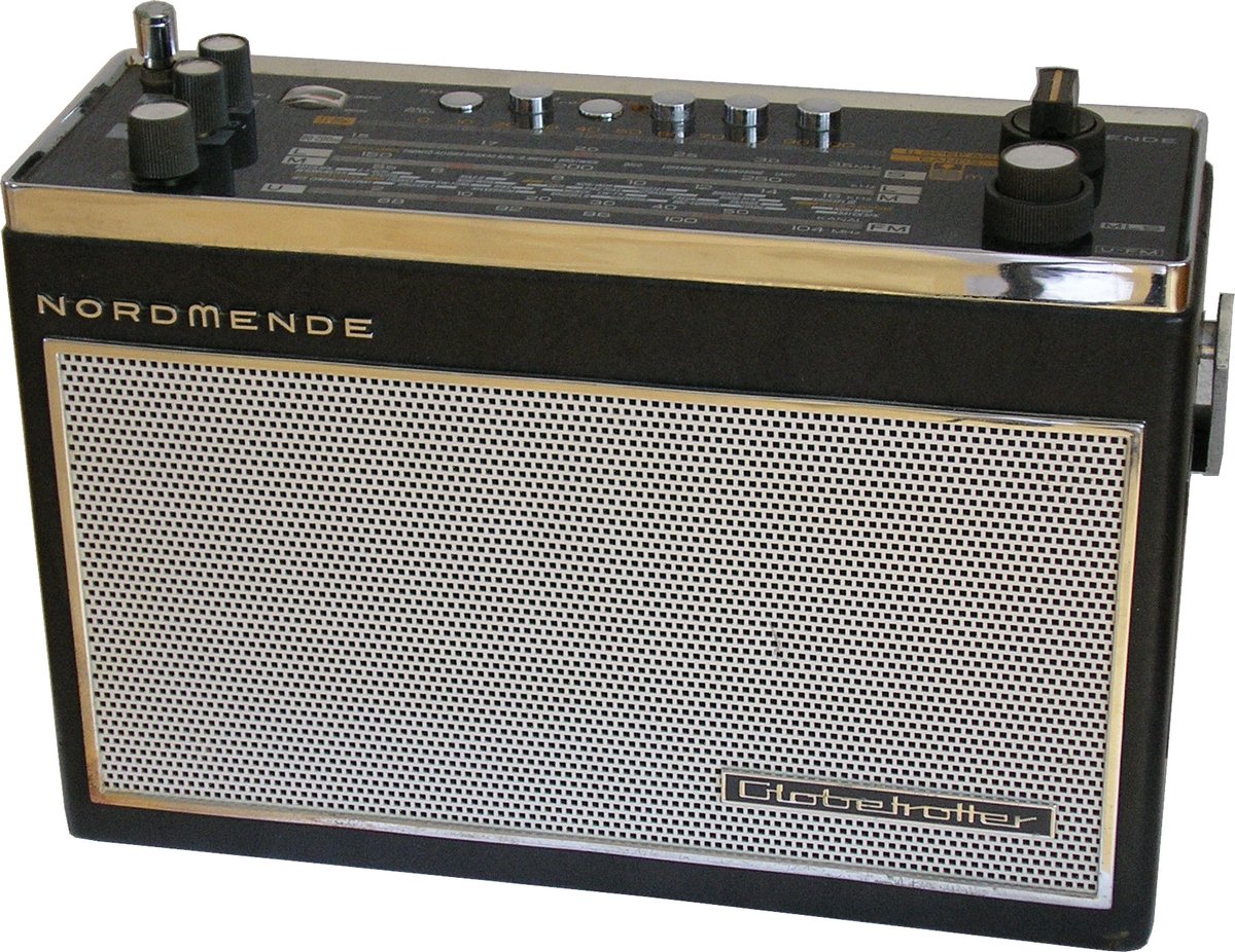 As the first of a whole series of portable travel radios, as forefathers of modern „world band receivers“, Nordmende launched the „Globetrotter“ in 1964, first with green labels at the bandspread dial and in the following year as a variant with orange coloured band spread dial labels.