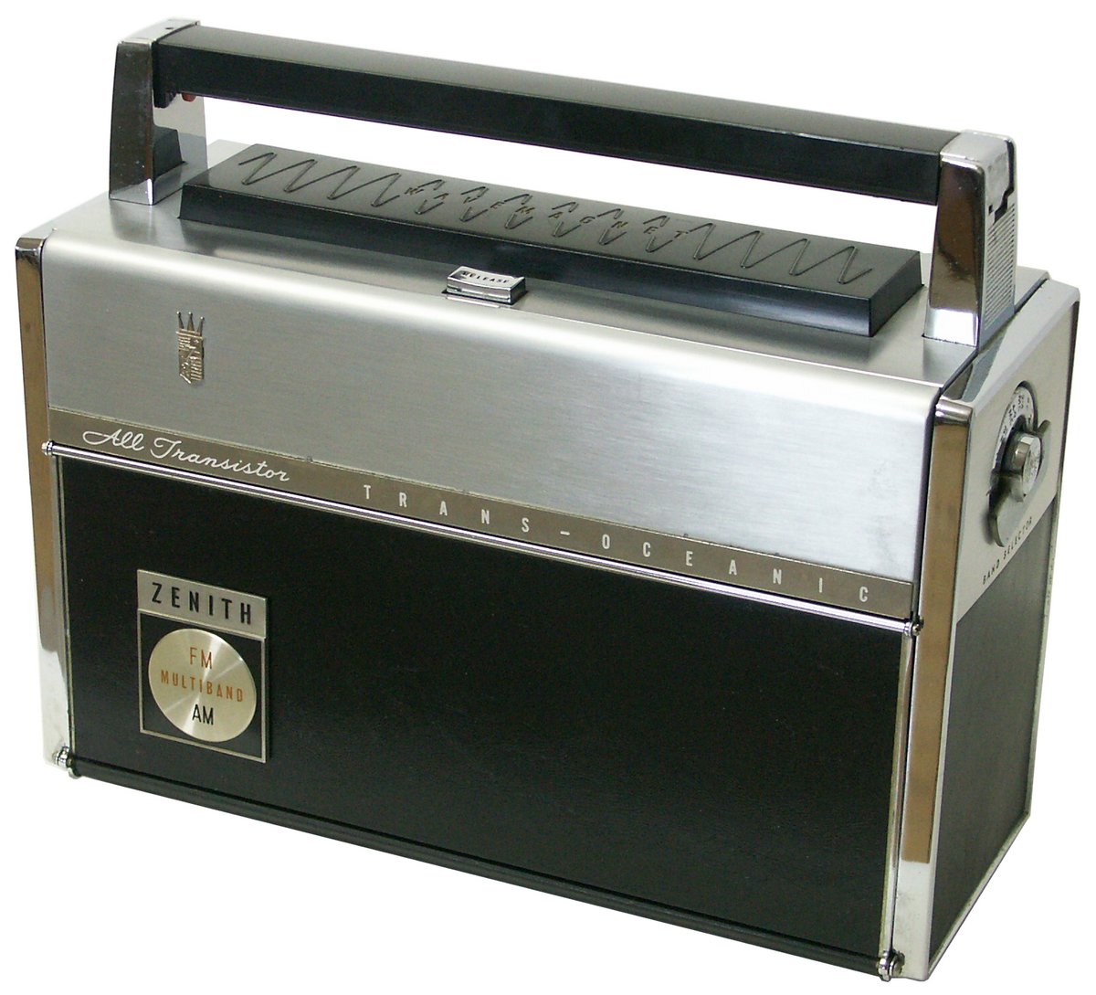 In 1958, Zenith launched the Royal 1000, the first transistorised receiver from the famous Trans Oceanic series. The Royal 1000-D version also covered the longwave range. The Royal 3000, introduced in 1963, was the first T/O to feature FM broadcast band reception, but the 13 m shortwave band was omitted and the detachable wave magnet no longer found space in the cabinet, but it still could be ordered as an accessory.