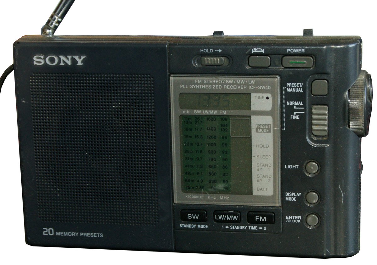 Der Reiseempfänger Sony ICF- SW-40 ist ein in digitaler PLL-TEchnik aufgebauter Doppelsuper mit den Zwischenfrequenzen 10,7 MHz / 455 kHz und deckt neben UKW, Lang- und Mittelwelle auch den Kurzwellenbereich von 3850 - 26'100 kHz ab. An der Rückseite des Kunststoffgehäuses verfügt das Gerät über eine Klappe zum Schrägstellen.