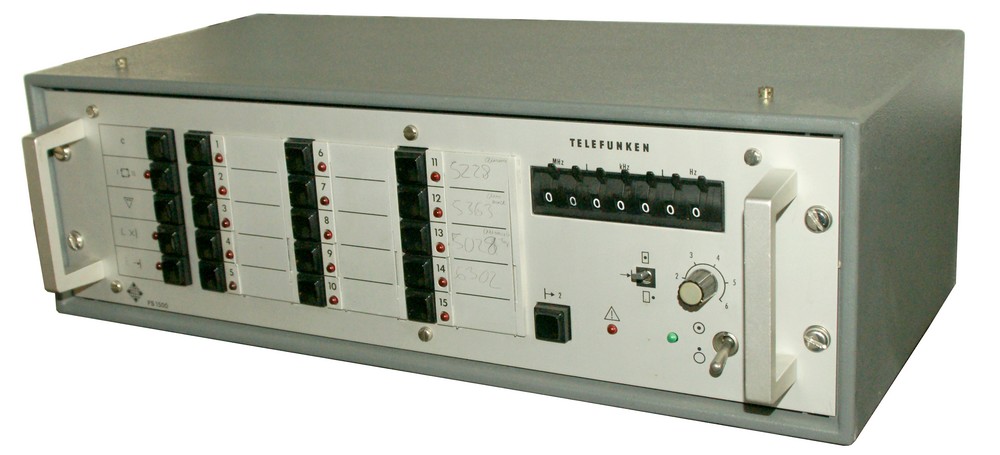 Im Frequenzspeicher FS 1500 können fünfzehn Betriebsfrequenzen abgelegt werden, diese können vom verbundenen Empfänger E 1501 übernommen und in den Speicher geschrieben oder mit dem siebenstelligen Schalter am FS 1500 eingestellt und in den Speicher übernommen werden.