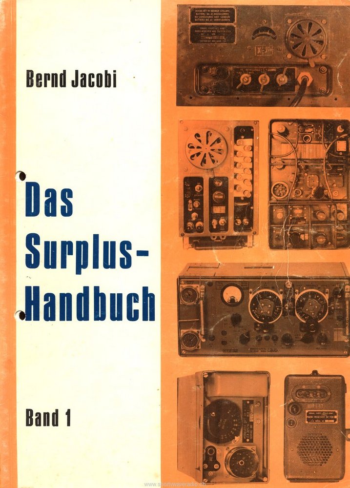 Ein beliebter Leitfaden war das Surplus - Handbuch von Bernd Jacobi. Es soll hier aus historischem Interesse bereitgestellt werden, nicht um Bastler zu animieren, an ihren historischen Geräten herumzubasteln (oft erlöst man beim Verkauf eines unmodifizierten Originalgeräts so viel Geld, um zwei schöne Amateurfunkgeräte erwerben zu können…), sondern um die zeitüblichen Modifikationen erkennen und bestenfalls rückgängig machen zu können.