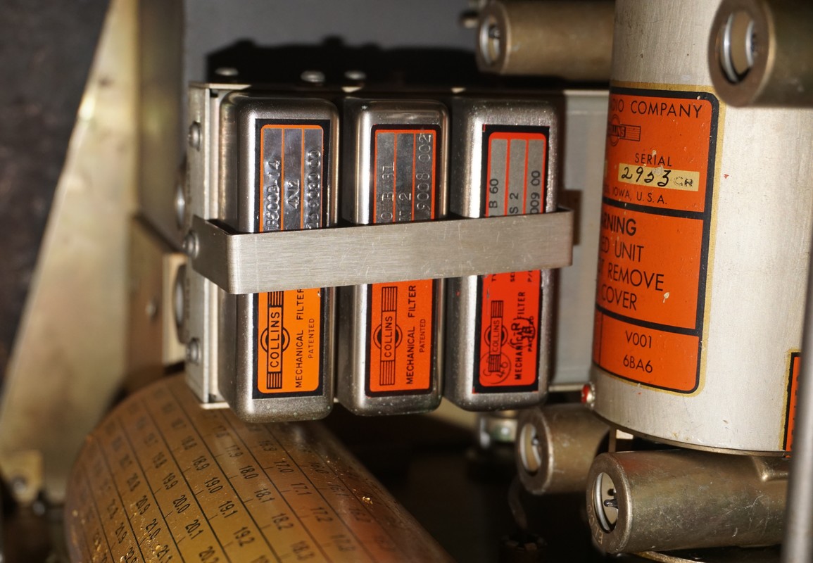 Next to the PTO under a retaining bracket are the three mechanical IF filters in their angular metal cabinets.