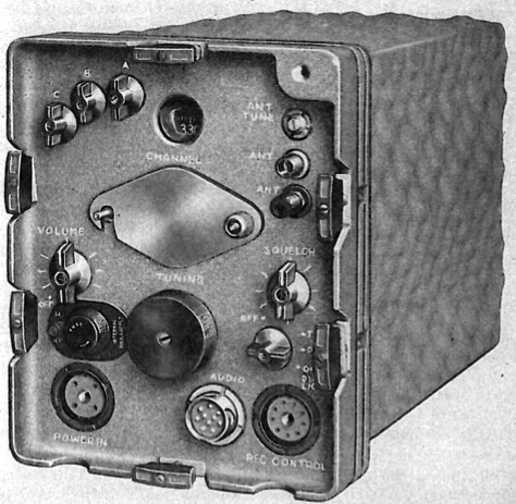 - Control box C-375/U with connections for microphones, headphones and the three channels of the AM-65 on-board amplifier.