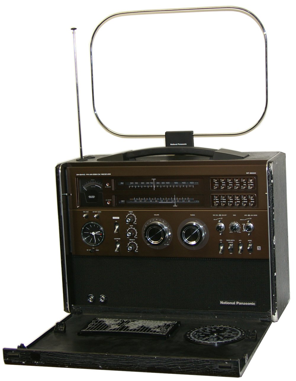 In the tradition of many older world band receivers, the Panasonic RF-8000 has various antennas: Telescopic antennas for shortwave and VHF/ FM reception and a rotable frame antenna for shortwaves.